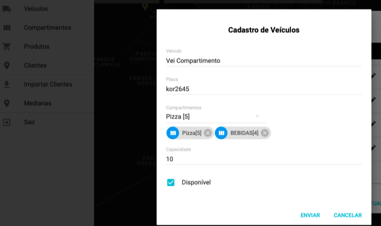 - Cadastro de clientes, veículos, tipos de compartimentos e produtos.